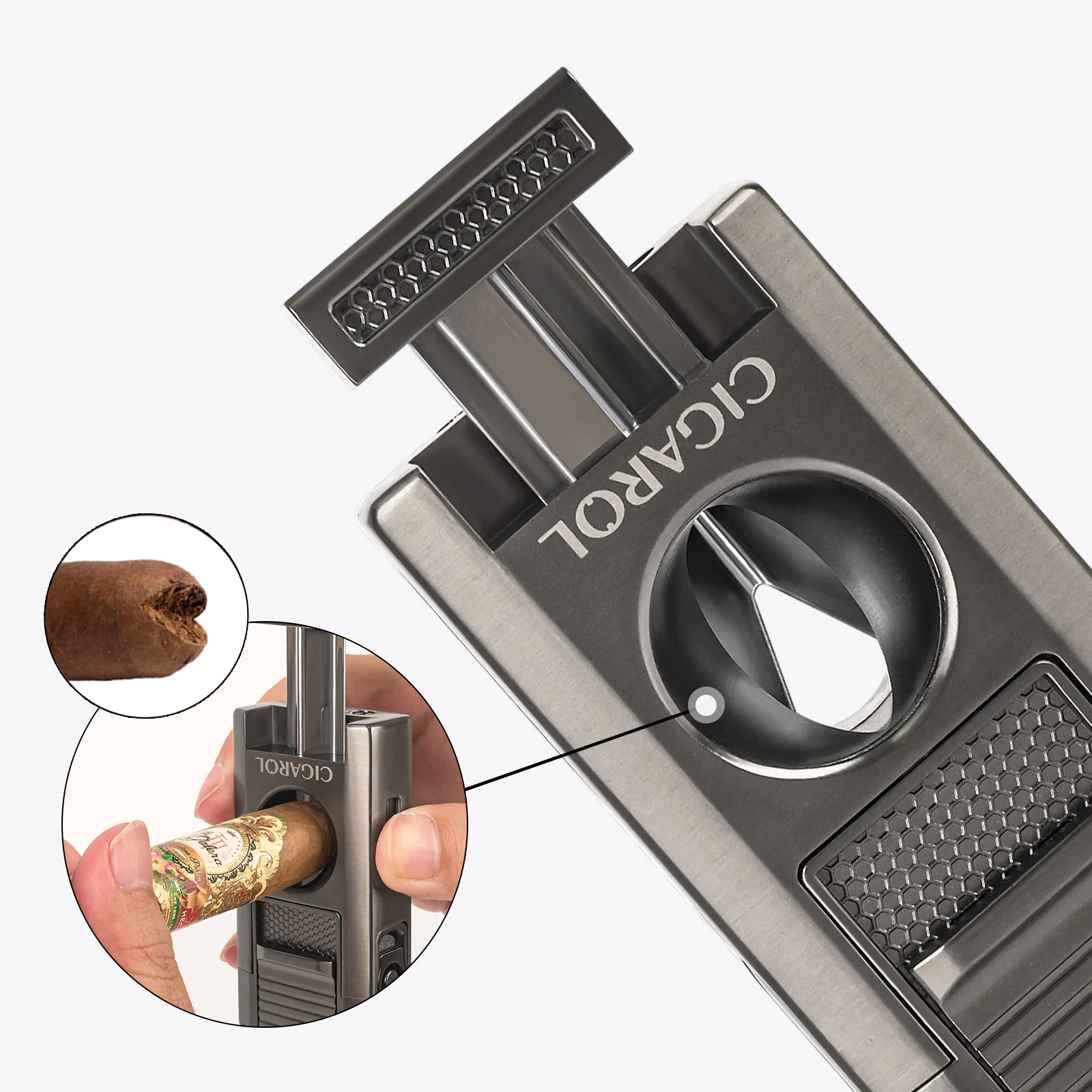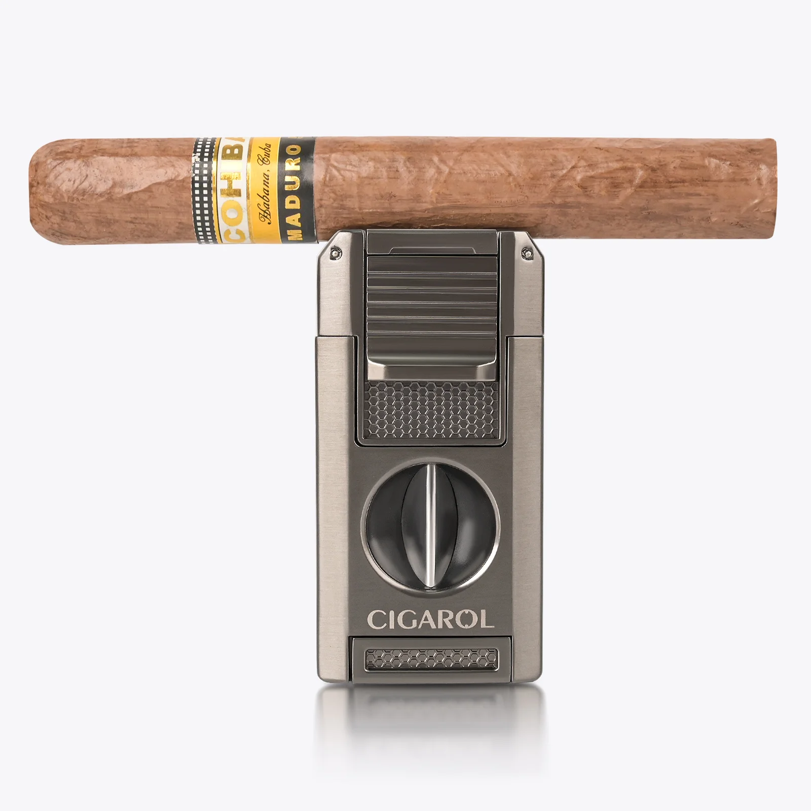 Elevate your cigar experience with a tool designed for convenience without compromising on sophistication. The Cigarol 5-in-1 isn’t just a lighter—it’s a complete preparation station that fits perfectly in your hand.