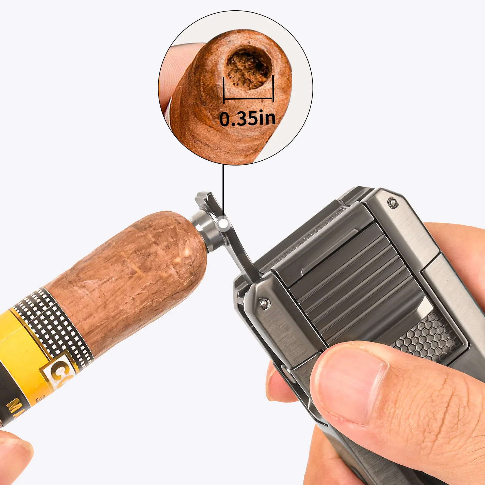 One Tool, Five Essential Functions Toss your bulky cutters and separate stands. We’ve integrated a pop-out V-cutter for a clean, deep draw and a 0.3-inch punch compatible with ring gauges up to 60. Stuck with a tight cigar? Use the built-in draw enhancer to fix the airflow instantly. When you’re done puffing, the lid doubles as a stable cigar rest to keep your stick off dirty surfaces.